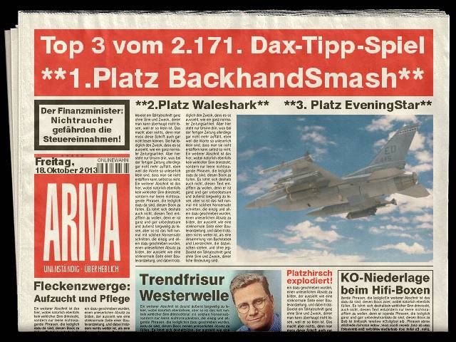 2.172.DAX Tipp-Spiel, Montag, 21.10.2013,17.45 Uhr, DAX ....???