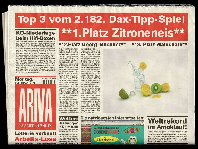 Gewinnerlinks 2.182. DAX Tipp-Spiel, Montag 04.11.2013, 17.45 Uhr, DAX 9.037.23