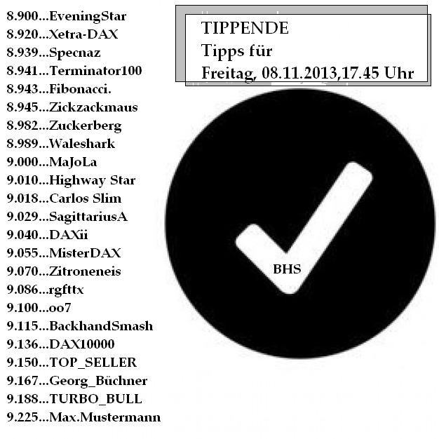 2.186.DAX Tipp-Spiel, Freitag, 08.11.2013,17.45 Uhr, DAX ....???