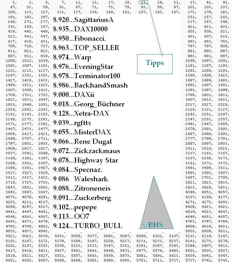 .....das sind keine geheimen Codes sondern Primzahlen - so wie die 23 nicht