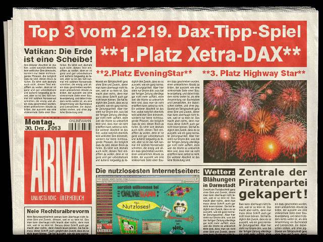 2.220.DAX Tipp-Spiel, Donnerstag, 02.01.2014,17.45 Uhr, DAX ....???