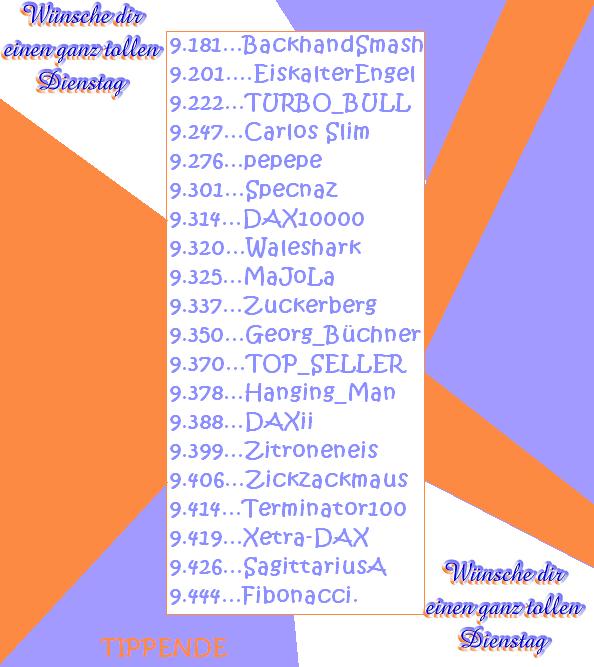Xetra-DAX wenn du die Betreffzeile schreibst musst du (vom Popup) immer deine Tippnummer richtig machen, dort stehen sonst immer die alten falschen Tippnummern drin, alle Tipper danken es dir. Danke an Waleshark für die Korrektur !