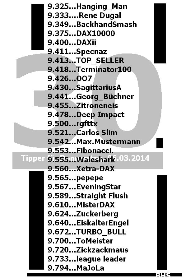 2.265.DAX Tipp-Spiel, Donnerstag, 06.03.2014 - 17.45 Uhr, DAX ....???