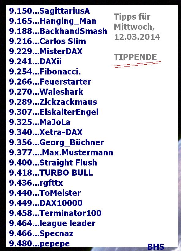 2.269.DAX Tipp-Spiel, Mittwoch, 12.03.2014 - 17.45 Uhr, DAX ....???
