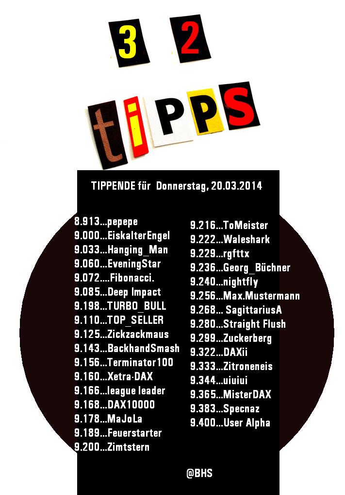 2.275.DAX Tipp-Spiel, Donnerstag, 20.03.2014 - 17.45 Uhr, DAX ....???