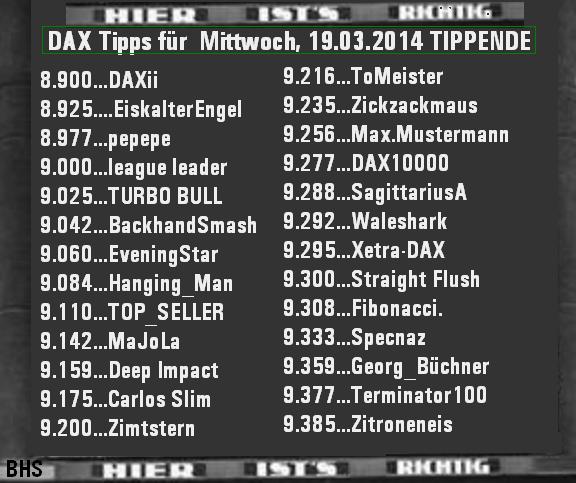 2.275.DAX Tipp-Spiel, Donnerstag, 20.03.2014 - 17.45 Uhr, DAX ....???