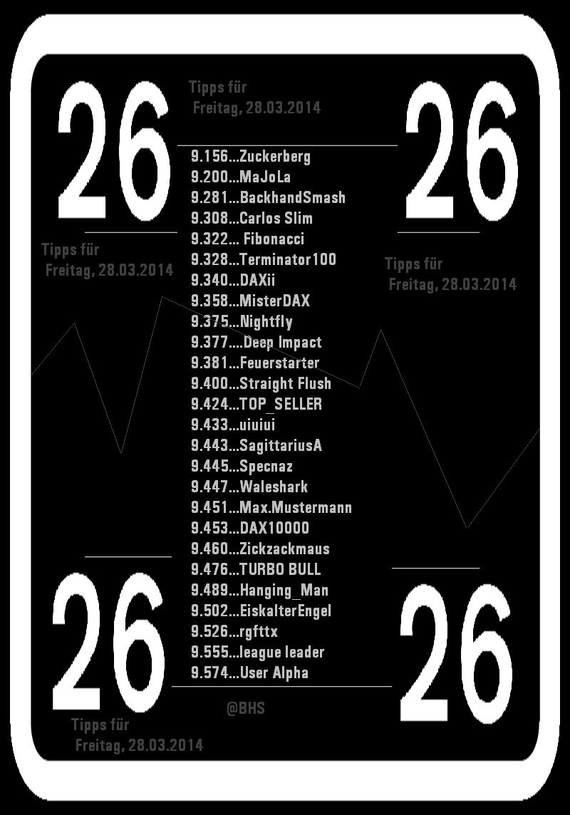 2.282.DAX Tipp-Spiel, Montag, 31.03.2014,17:45 Uhr, DAX ....???