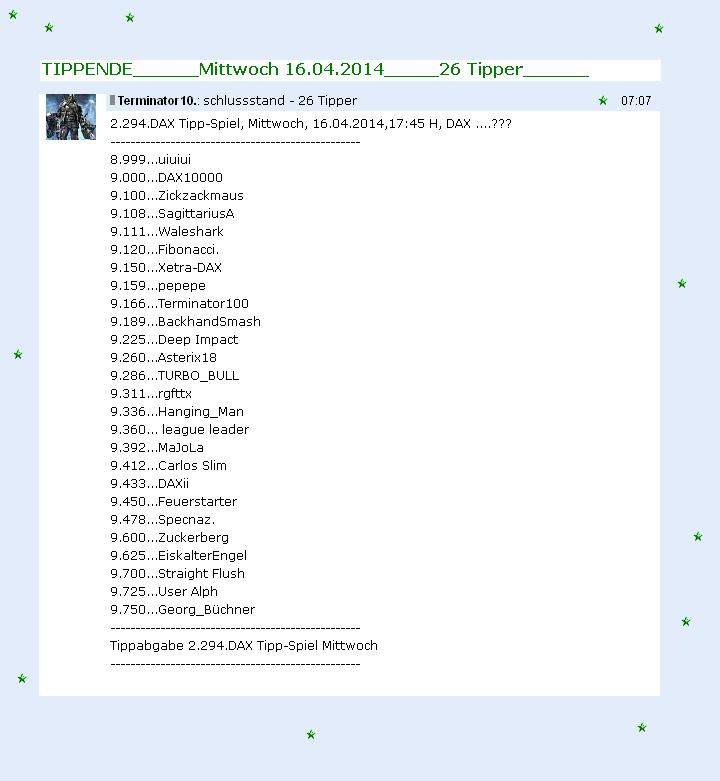 2.294.DAX Tipp-Spiel, Mittwoch, 16.04.2014,17:45 H, DAX ....???