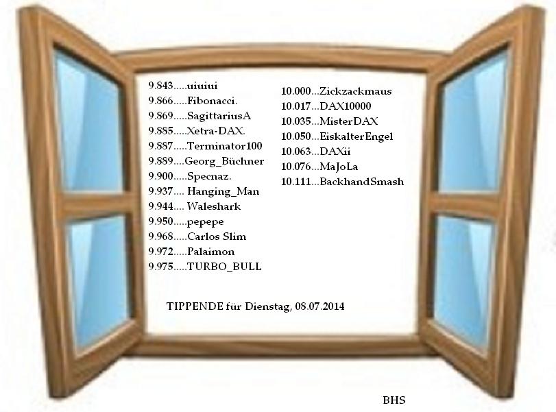 2.351.DAX Tipp-Spiel, Mittwoch, 09.07.2014,17.45 Uhr, DAX ....???