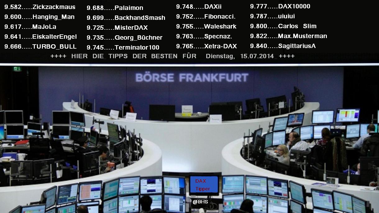 2.355.DAX Tipp-Spiel, Dienstag, 15.07.2014,17.45 Uhr, DAX ....9719,41