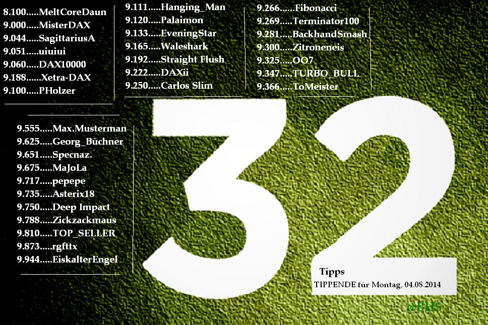 2.369.DAX Tipp-Spiel, Montag, 04.08.2014,17.45 Uhr, DAX ....???