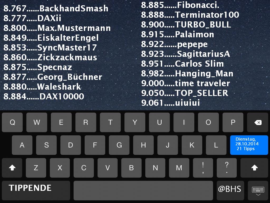 2.429.DAX Tipp-Spiel, Dienstag, 28.10.2014,17.45 H 768812