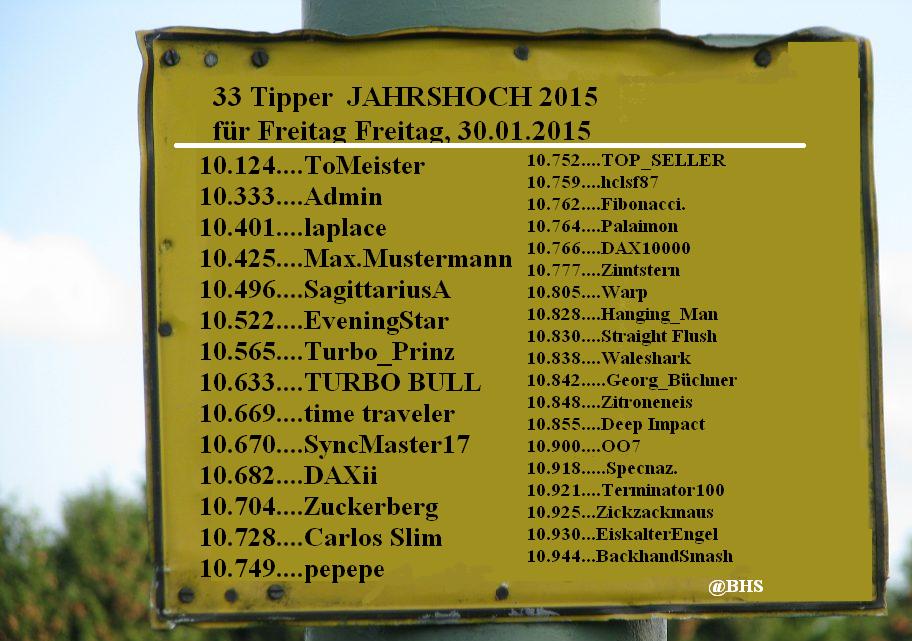 2.492.DAX Tipp-Spiel, Freitag, 30.01.2015,17.45 H