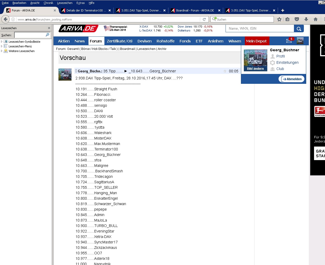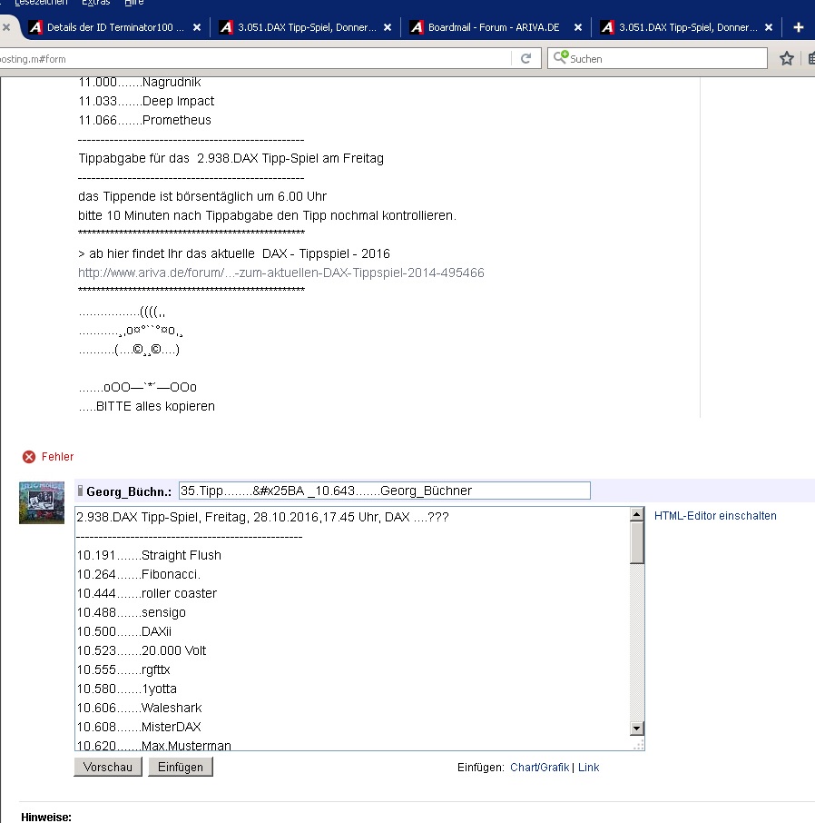 2.938.DAX Tipp-Spiel, Freitag, 28.10.2016,17.45 Uhr, DAX ....???