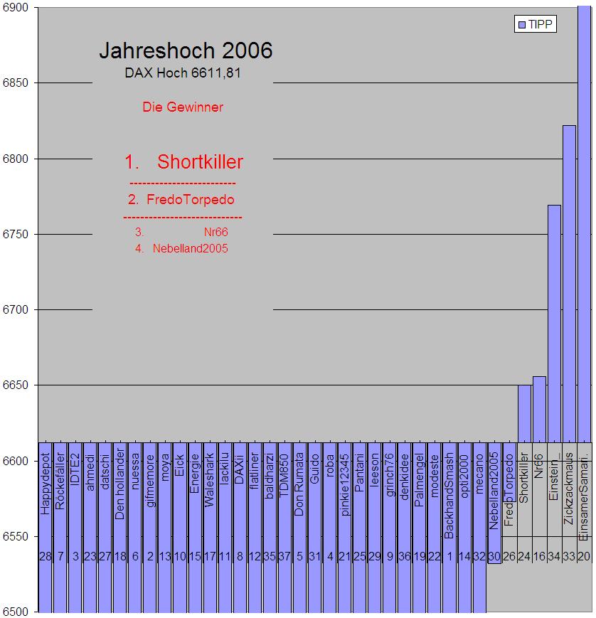 | BackhandSmash | Mein Tipp DaxJahreshoch 2006: 6532 Happy New Year; o. T. | 02.01.07 13:33 | 31.12.05 21:27 |