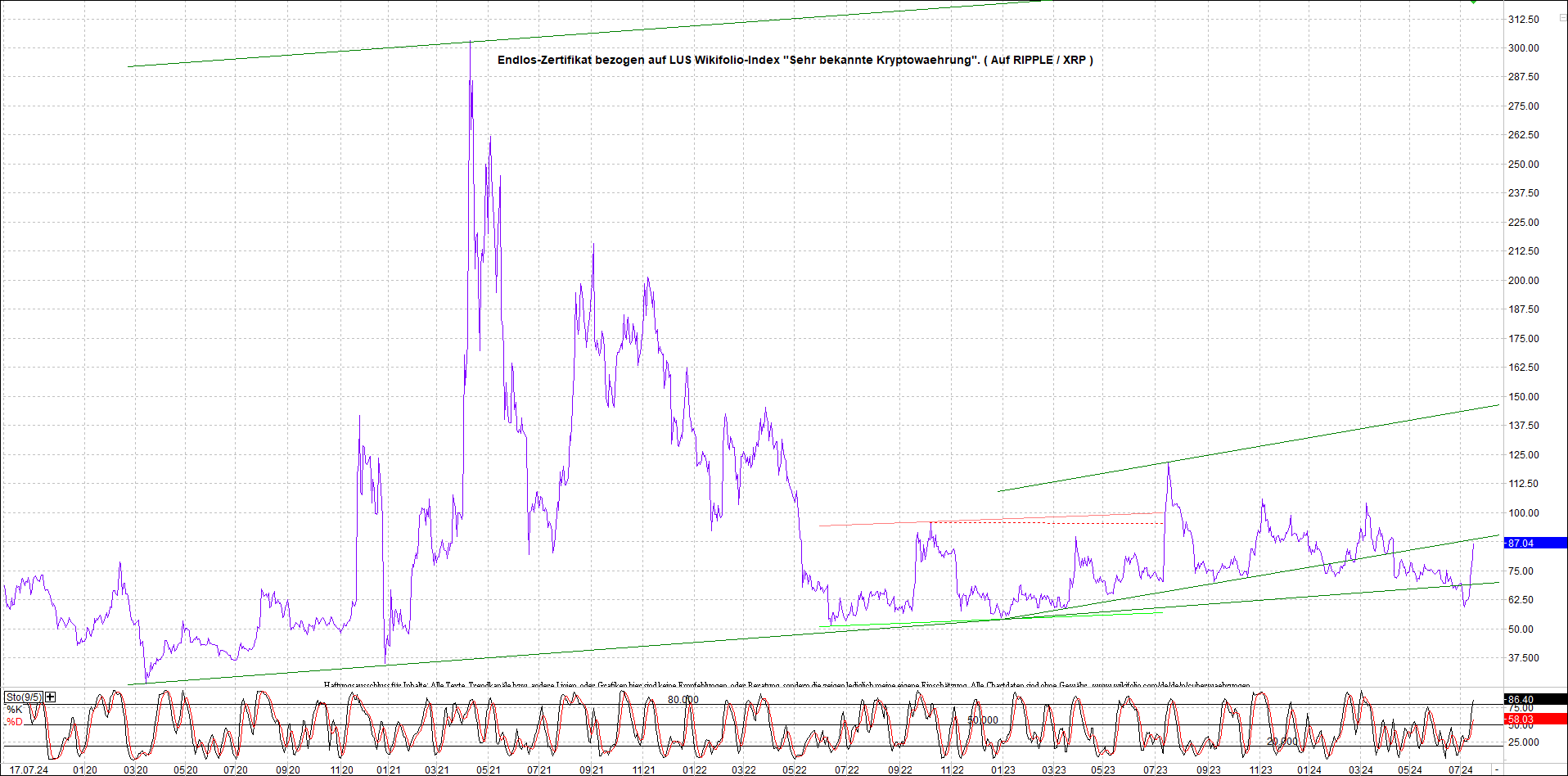 RIPPLE (XRP) Chart. Oben Ripplezertifikat