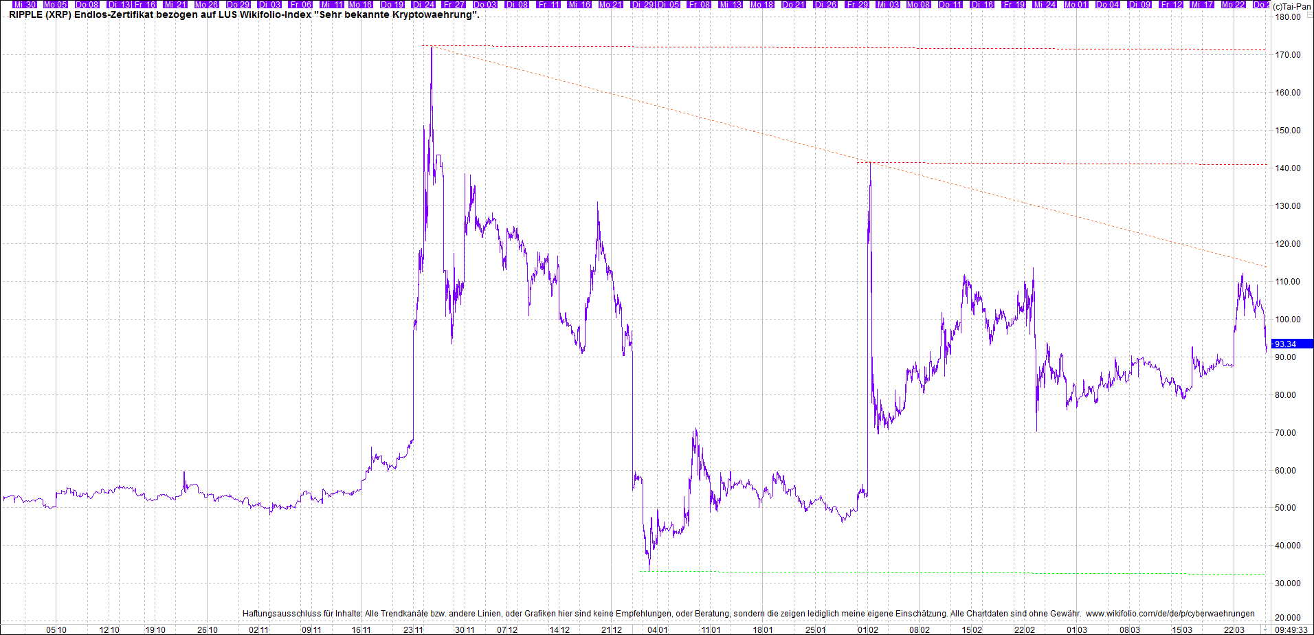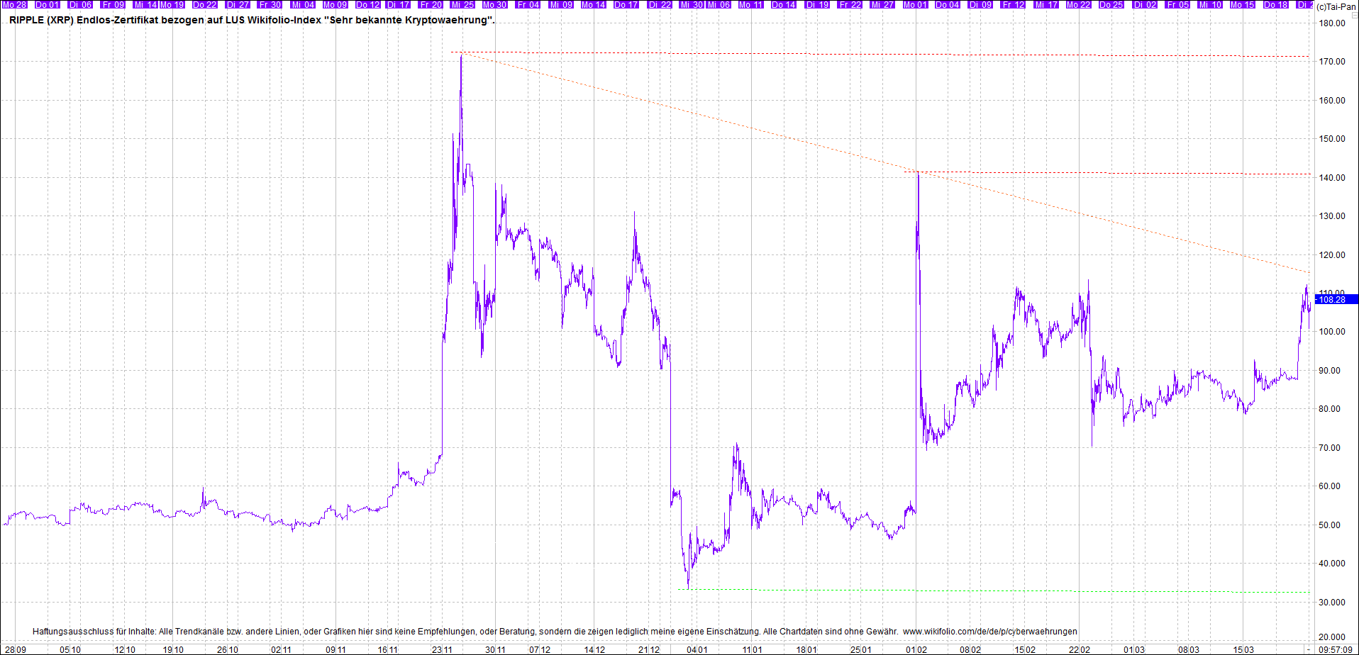 Bitcoin Cash (BCH) Chart heute am Morgen. Anbei das Zertifikat, jetzt mit Bitcoin Cash (BCH), bekannt als: Endlos-Zertifikat bezogen auf LUS Wikifolio-Index "Performance von Kryptowaehrung".