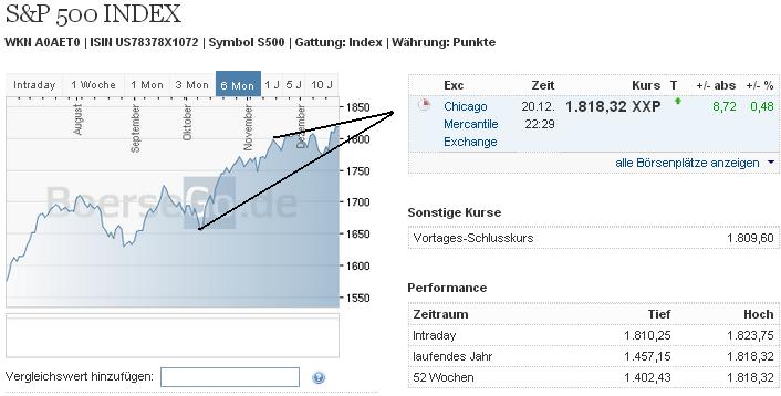 hamburger59: meiner Meinung nach S&P mit Öl zu vergleichen, ist der Versuch, Äpfel mit Birnen zu vermischen. S&P hat seinen Wert aufgrund von tatsächlich erbrachten Gewinnsteigerungen je Aktie, währenddessen Öl seine Steigerungen und auch das Fallen mit Winter-Sommer, Eingrenzung und Kontingentierung der Produktion, und vor allem politischen Einflüsse verdankt. Nach dem Motto, ok, S&P geht rauf, mehr Produktion und Handel, aha, gut, wir vermindern das Fördern von Öl, dann geht der Preis mit rauf .. So gelenkt also, wie der Aluminium Preis, wo eine GS-Tochter das Aluminium zwischen den Lagerhäusern herumführt und der Preis hochgeht, weil das Aluminium zwischen dem Herumführen nicht verfügbar ist ;-) ..