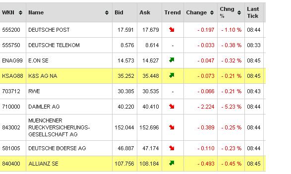 Die Telekom will jetzt das Angebot für Metro PCS erhöhen. Das dürfte den Kurs senken und die Divrendite erhöhen. Auf Dauer wird die Telekom diese hohe Dividende nicht halten können, weil sie sie gar nicht mehr verdient, sondern mehr investieren muß imho.