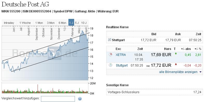 Post: lo-sh, ja da sieht es hut aus. Charttechnisch, fundsmental, Dividende passt auch, Investitionen wurden letztes Jahr vorgrzogen und die Mitbewerber haben erhebliche Probleme mitzuhalten. Eigentlich läuft es zu gut. ;) Der Bund hst ja noch Aktien und bereits im letzten Jahr durch den Verkauf (von frag mich nicht wie vielen Mio. Aktien) für einen zwischenzeitlichen Rücksetzer gesorgt. Das war im Bereich von 14 oder 15 Euro, wenn ich mich recht entsinne. Weitere Verkäufe wurden damals nicht ausgeschlossen. Vll gibt es noch einmal gute Einstiegschancen. Zur JHV sollte man a ber investiert sein, da der Dividendenabschlag idR schnell kompensiert wird bei der DTP. Ich rechne dieses Jahre mit einem starken Ausblick unf für 2014 mit einer Sonderdividende oder zumindest ordentlich erhöhten Dividende. :)