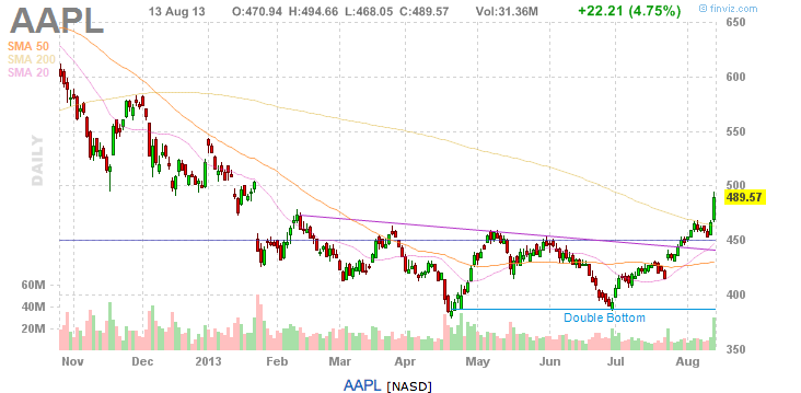klarer ausbruch nach oben ziel 52x...dann korrekturpotenzial. das problem bei apple ist, das die aktie sehr newsgetrieben ist