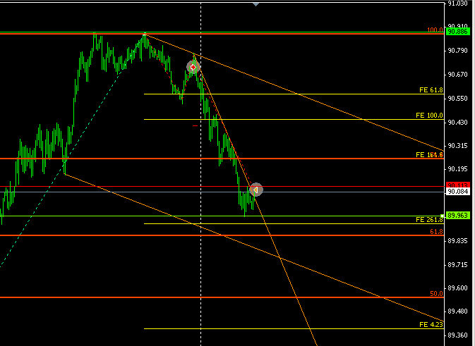 Grund I: Bruch der Abwärtslinie mit erstem höheren Tief im M5.