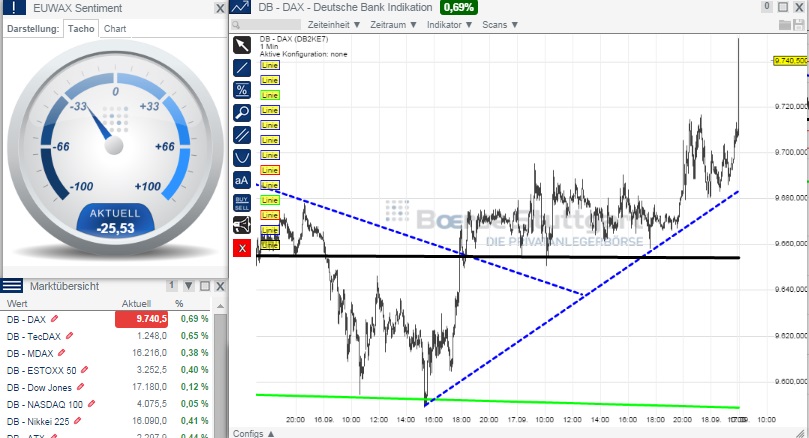 Zwischen 9450 und 9800 liegt die Optionen - Wette für die gestrigen Spitzenreiter. Ins Geld kommen die erst, wenn also 9800 überboten und 9450 unterboten werden. Die Bankster werden sich hüten, diese Grenzen zu überschreiten - gibt sonst keine Prämie für die ...