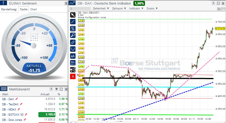 finde ich die Strategie der Notenbanken. Das Gerede, respektive die Maßnahmen haben ein wenig Karussell-Charakter! Rudert Yellen oder Japan zurück, kommt Mario aus der Kiste und verkündet geldpolitische Präsente. Bremst Mario, kommt Janet aus dem Loch und macht sich Sorgen um die Weltkonjunktur und spendet dem Markt Liquidität. Schweigen beide, kommen die Japaner und drucken Yen und lassen die MwSt doch unten ... ein sich selbst nährendes System ... die geldlegende Wollmilchsau!
