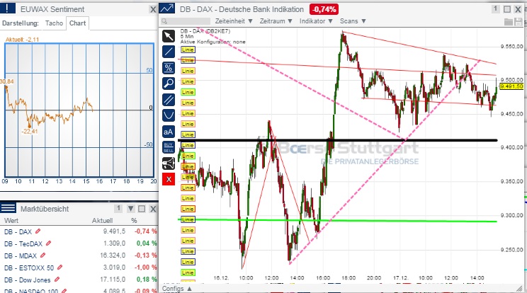DAX, ES50 treten auf der Stelle. ATX schwer unter Druck geraten, immerhin fast -20%.