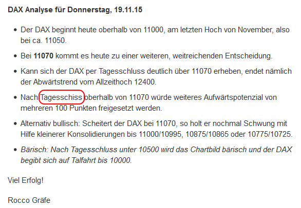 Wenn ich was machen würde, würde ich bei ca. 11028 nen SI bereitlegen (mac is schon gaaaaaaanz leicht neg, da ist der "Boden" des vorherigen der beiden letzten "großen" Shortkonter (der andere is bei 35) & wenn's n büschn Schwung nimmt & die 11 bricht, haben die Stillhalter evtl. noch n Wörtchen mitzureden.