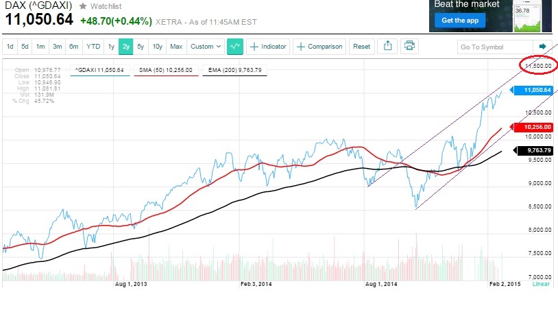 DAX Analyse vom 06.02.2015: Aus meiner DAX Analyse der vorliegenden DAX Chartkonstellation geht hervor, dass aktuell KEIN gutes Umfeld mehr besteht, um den DAX für mehrere Wochen oder gar Monate zu kaufen. Der DAX steht nach Auswertung aller Indizien, unbesehen hier und da noch auftretender temporärer Hochs, vielmehr vor baldigen Rücksetzern bis 10100/10150 und später im Jahr durchaus auch vor nochmaligen Rücksetzern bis 8200/8350.