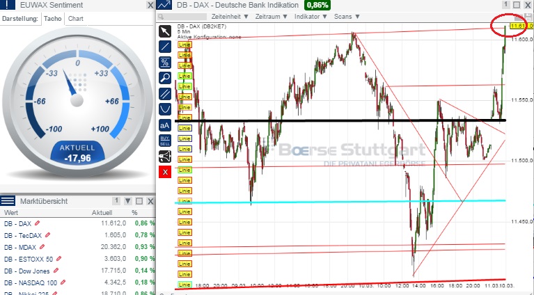 1. Intraday ist heute zunächst ein Rückfall auf 11485 oder 1460 zu erwarten und dann ein weiterer Anstieg bis mindestens 11550.