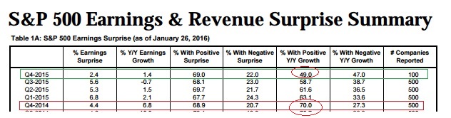 Kleine Analyse von Yardeni: 100 Firmen haben gemeldet, was auffällt, starker Rückgang bei den Firmen mit positiven Jahr/Jahr Wachstum zum Vorjahresquartal ..