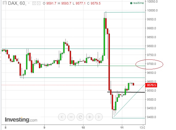 Und da offenbar nicht wenige in das fallende Messser gegriffen und bereits ab 9700 abwärts immer stärker hineingelongt haben, hatten wir erneut die selbsterfüllende Prophezeiung!
