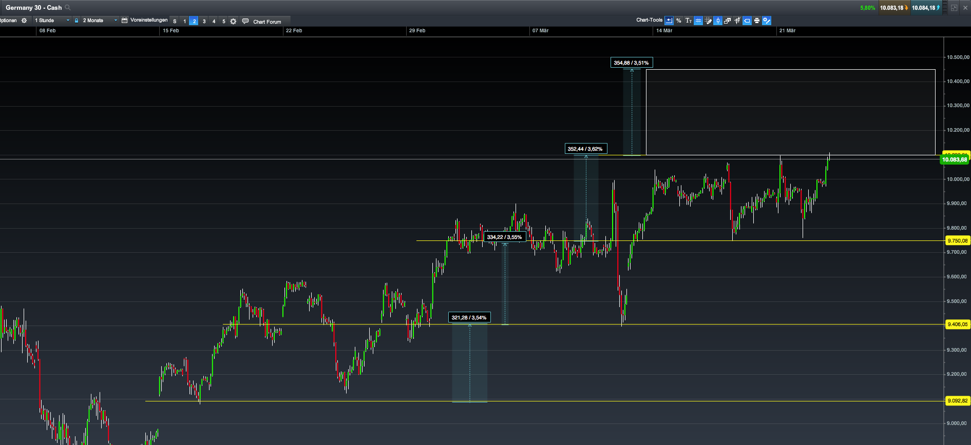 @krofi: Mal ne ernstgemeinte Frage... Handelst du mit Papier und Bleistift oder real? Falls real, dann hoffe ihc für dich dass deine Posis entweder klaein sind oder dein Konto extrem groß. Dein Eurolong ist mittlerweile auch wie weit hinten... 100 Pips? Nimm's mir nicht übel aber wenn du bei 30 Daxpunkten in deine Richtung einen auf "Danke Anke, I told you" machst, dann issas hier gerade... naja... alles, nur kein vorbildliches Trading. Oder aber ich bin zu doof & hab deine Strategie nicht verstanden...