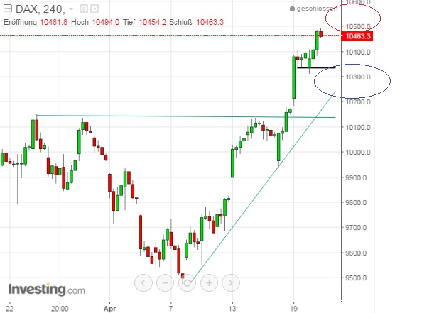 Das nächste Dax-Ziel könnte sich jetzt aus der großen Abwärtskurslücke vom Jahresanfang 10.486 zu 10.743 Punkte bilden. Der Jahresanfang war ziemlich hart und auch sehr gemein wegen der Chinesen. Na, hoffentlich kommt kein "schwarzer Schwan" vorbeigeflogen! Mal sehen, was M. Draghi morgen wieder posaunen will.