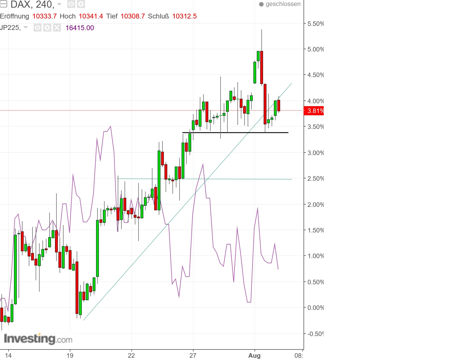 XDAX hat nach dem bearisch Engulfing (falls heute Bestätigung erfolgt)weiteres Potential nach unten(ca 100-150 Punkte) Allerdings sollte dazu die 340 nicht mehr überschritten werden.(H1)