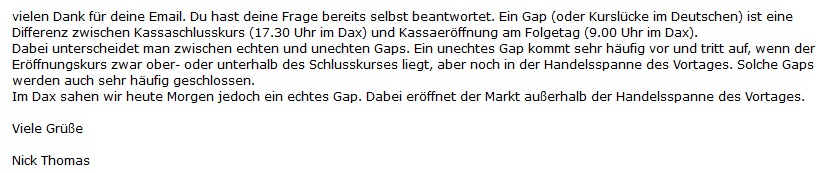 Und wer heute bei 10300 auf "gut Glück" long geht, kann morgen früh schon bei 10200 stehen, sofern er keine CFDs handelt und SLs in der Nacht nicht bedient werden.