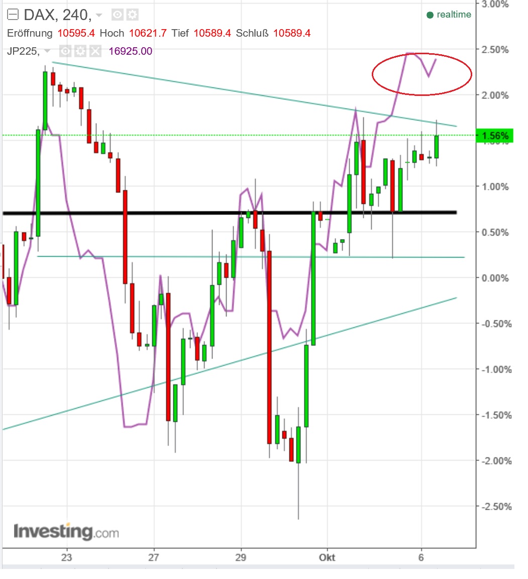 Offenkundig gibt es doch Geheim-Verhandlungen zwischen Berlin und Washington – die Merkel-Regierung versucht, die Strafe für die Deutsche Bank nach unten zu drücken. Bislang hatte Berlin ja stets gesagt: das geht uns nichts an – nun also der Sinneswandel, weil man erkannt hat, wie gefährlich die Situation ist. In Sachen Deutsche Bank herrscht ja erstaunlicherweise seit gestern Grabesruhe. Ansonsten nach den starken ISM-Daten gestern die Aktienmärkte ohne klare Richtung, man wartet auf die morgigen US-Arbeitsmarktdaten. Daher dürfte am heutigen Handelstag keine Vorentscheidung fallen, die Märkte sind in einem Seitwärts-Modus. Nun dürfte der Dollar stärker werden – vor allem, wenn morgen starke US-Arbeitsmarktdaten kommen sollten, ist eine Zinsanhebung sogar schon im November „drin“..
