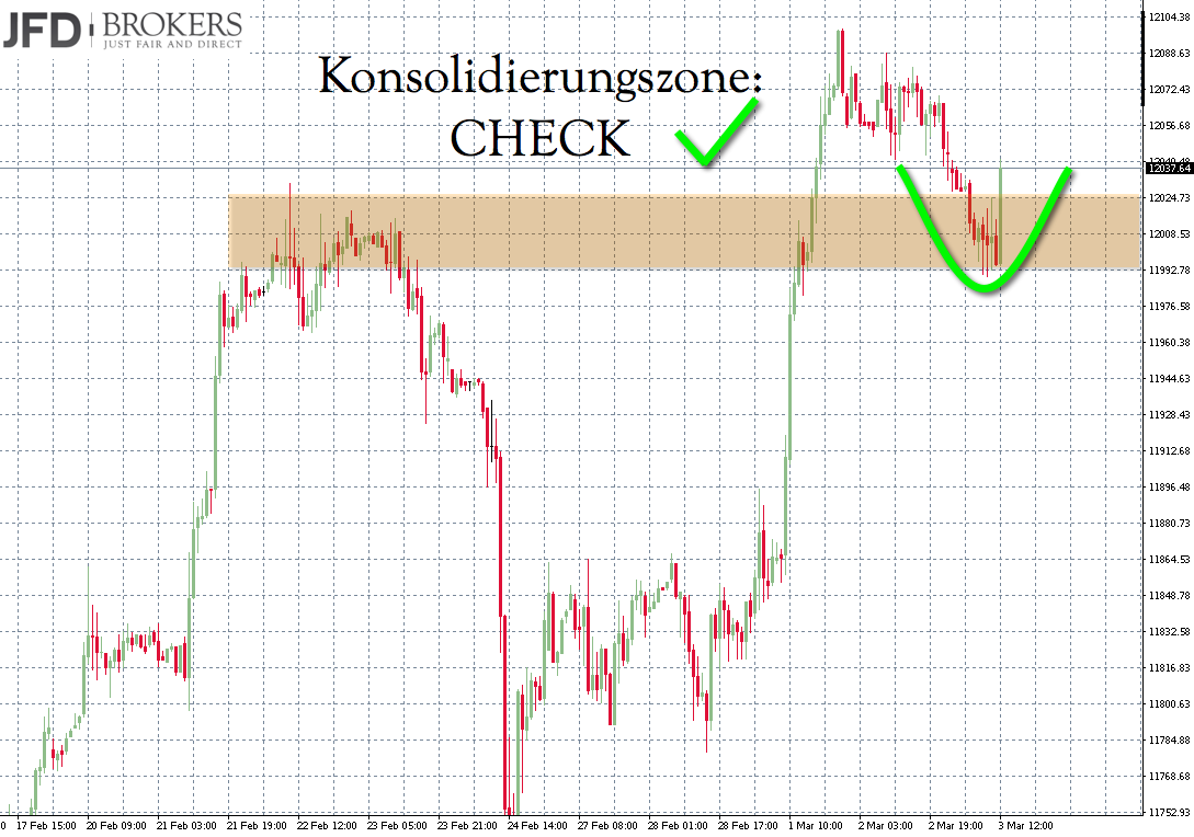 Am Abend treten einige Offizielle der US-Notenbank ans Rednerpult, unter anderem Janet Yellen. Der Markt erwartet mit Spannung, ob die Fed-Chefin Andeutungen für eine Zinserhöhung noch im März machen wird. Dementsprechend ist am Abend noch einmal mit Volatilität zu rechnen. Im Vorfeld stehen die Chancen für eine technische Erholung in den Bereich 1,0550/60 USD nicht schlecht, vorausgesetzt die 1,05er Marke wird nun nicht mehr unterboten. Spätestens im Bereich des SMA100 bei 1,0550 USD muss allerdings schon wieder mit größerem Verkaufsinteresse gerechnet werden. Unterhalb von 1,0500 USD rückt hingegen sehr zügig die Marke von 1,0450 USD (potenziell deutlich tiefer) auf die Tagesordnung.