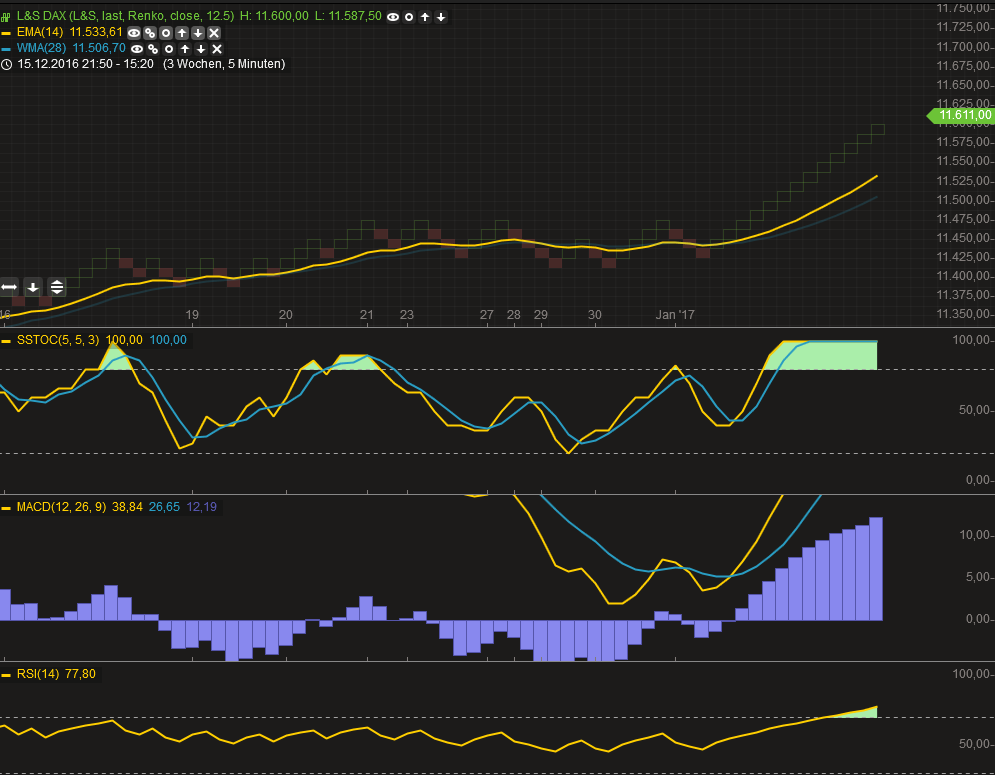Im Dax-Stundenchart sieht es nach einer bilderbuchmäßigen bullishen Flagge aus. Theoretisch müssten morgen schon weiter 100 Punkte aufwärts erfolgen.