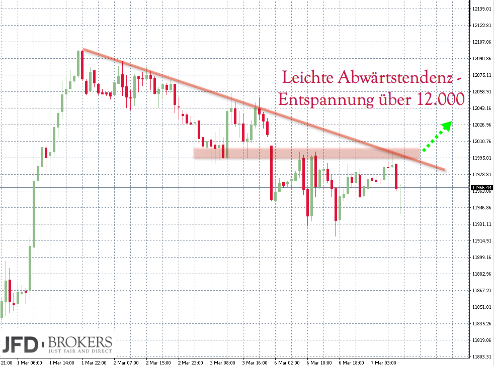 Unter 11840 dürfte sich die Korrektur ausweiten und das Unterschreiten wäre ein Shorttrigger
