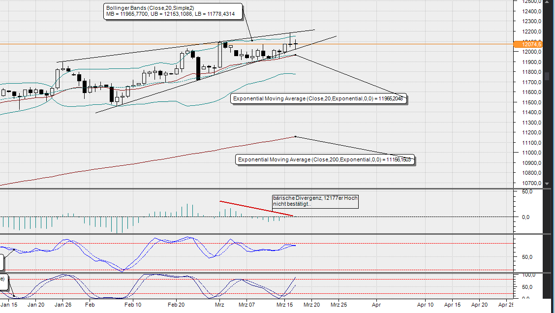 Sollte also übers WE nicht sonderlich abweichend "herumgetaxt" werden bzw. am Montag ein annähernder Kurs zu sehen sein, sind die Marken 12100, 12080 und wie bereits gestern geschrieben 050 und 030.