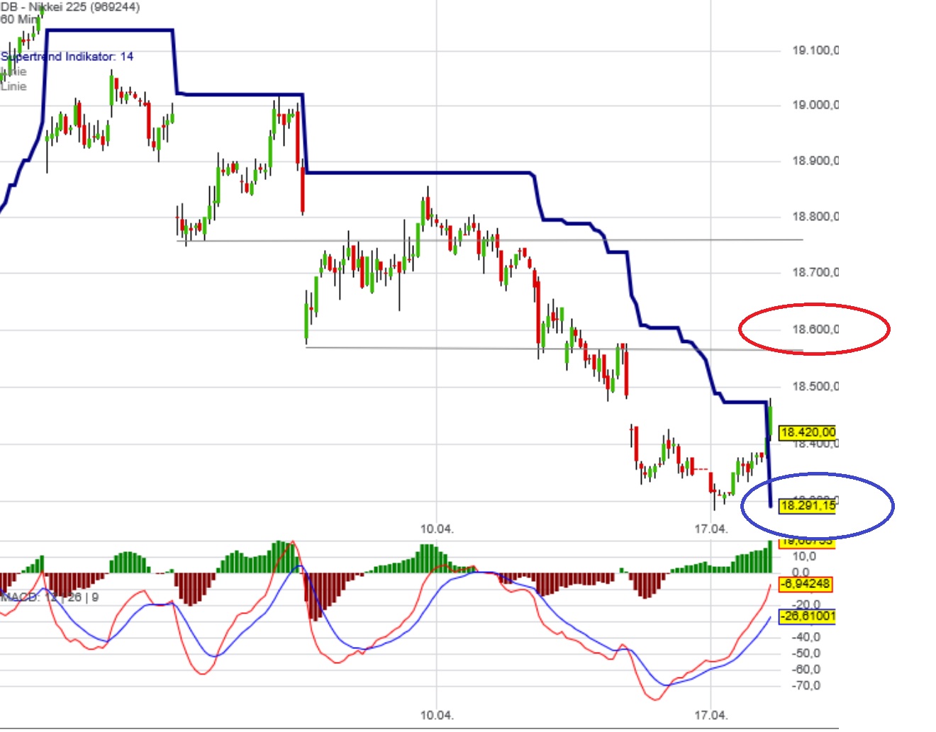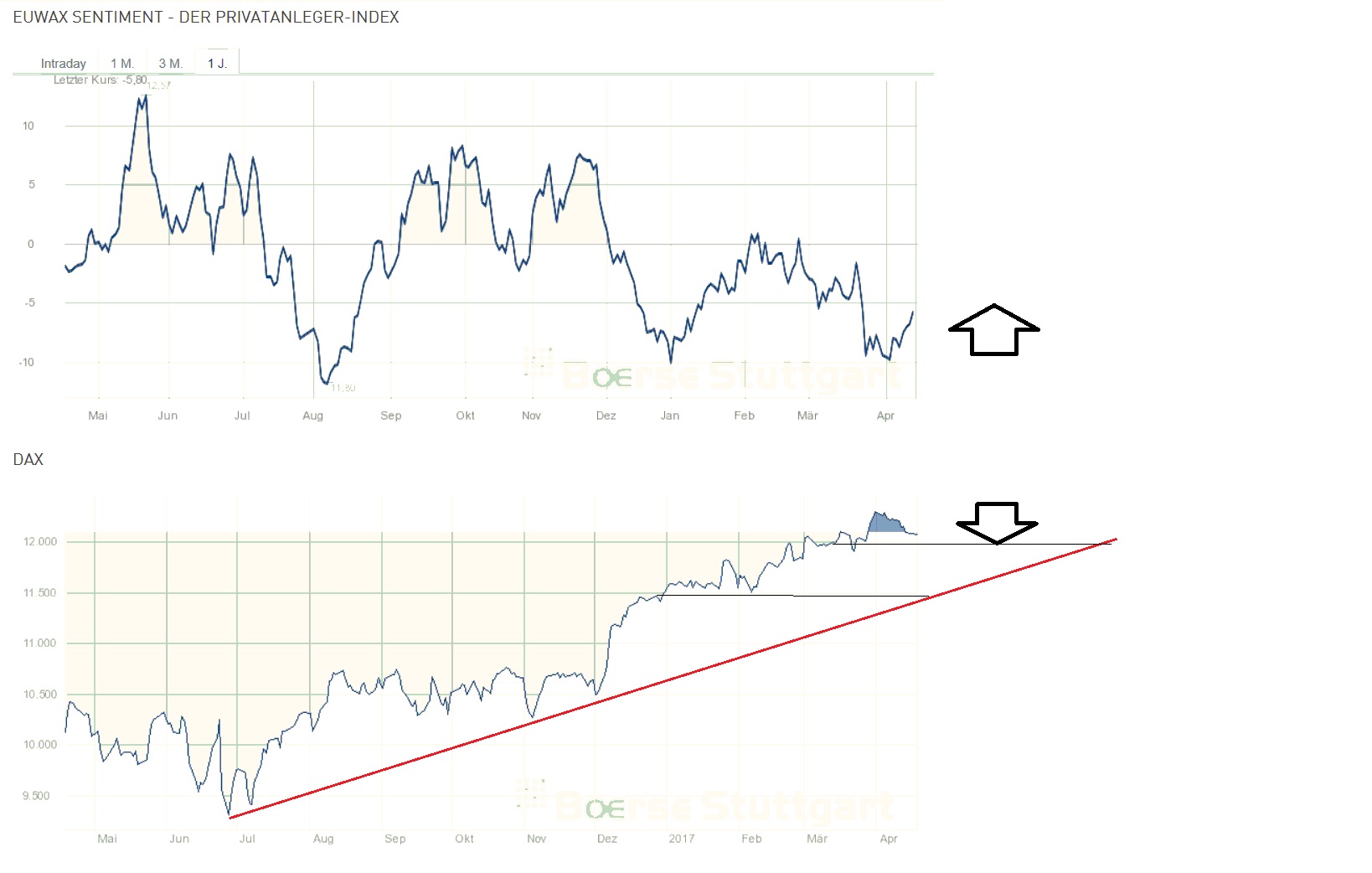 GDAXi aktuell bei 12160, schwarze Linie 12200 - bin darüber long, darunter ...
