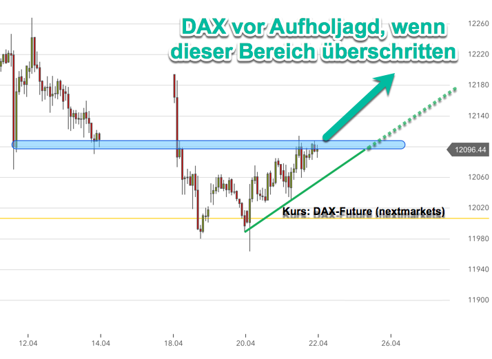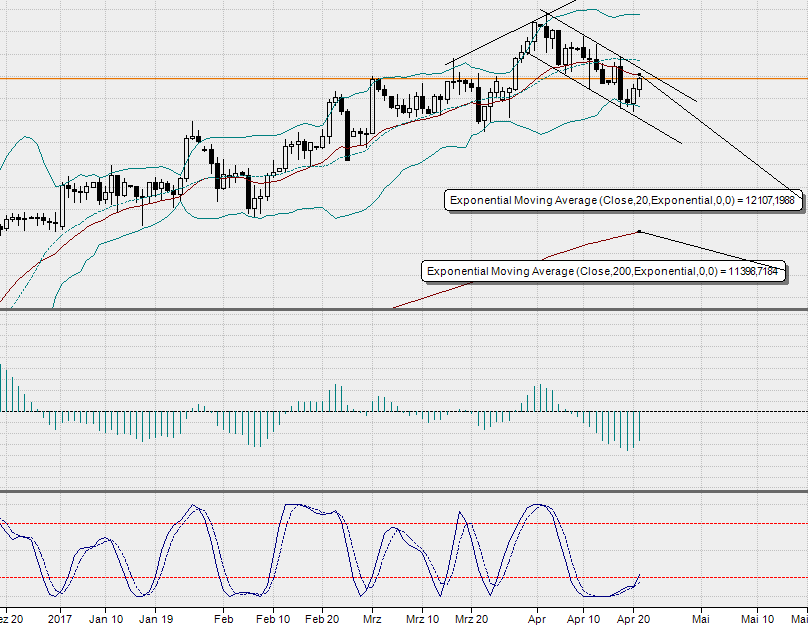 Dax befindet sich in einem intakten Abwärtstrend....., welcher am Montag etwa im Bereich 12110/20....verläuft..., es sieht nach einer pot. bullischen Flaggenformation aus..