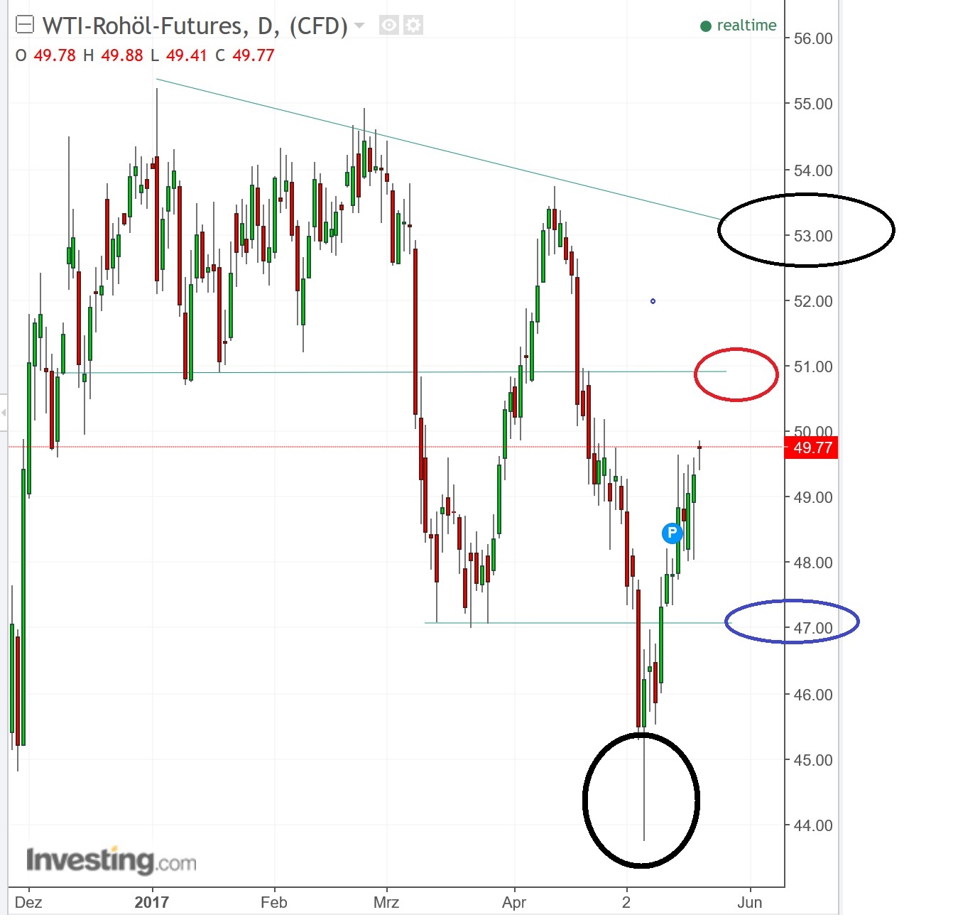 Rückblick: Der Ölpreis bewegte sich an den vergangenen Handelstagen innerhalb einer Handelsspanne zwischen dem Widerstand bei 52,55 USD und der Unterstützung bei 51,02 USD. Zuletzt gelang daraus der Ausbruch nach oben.