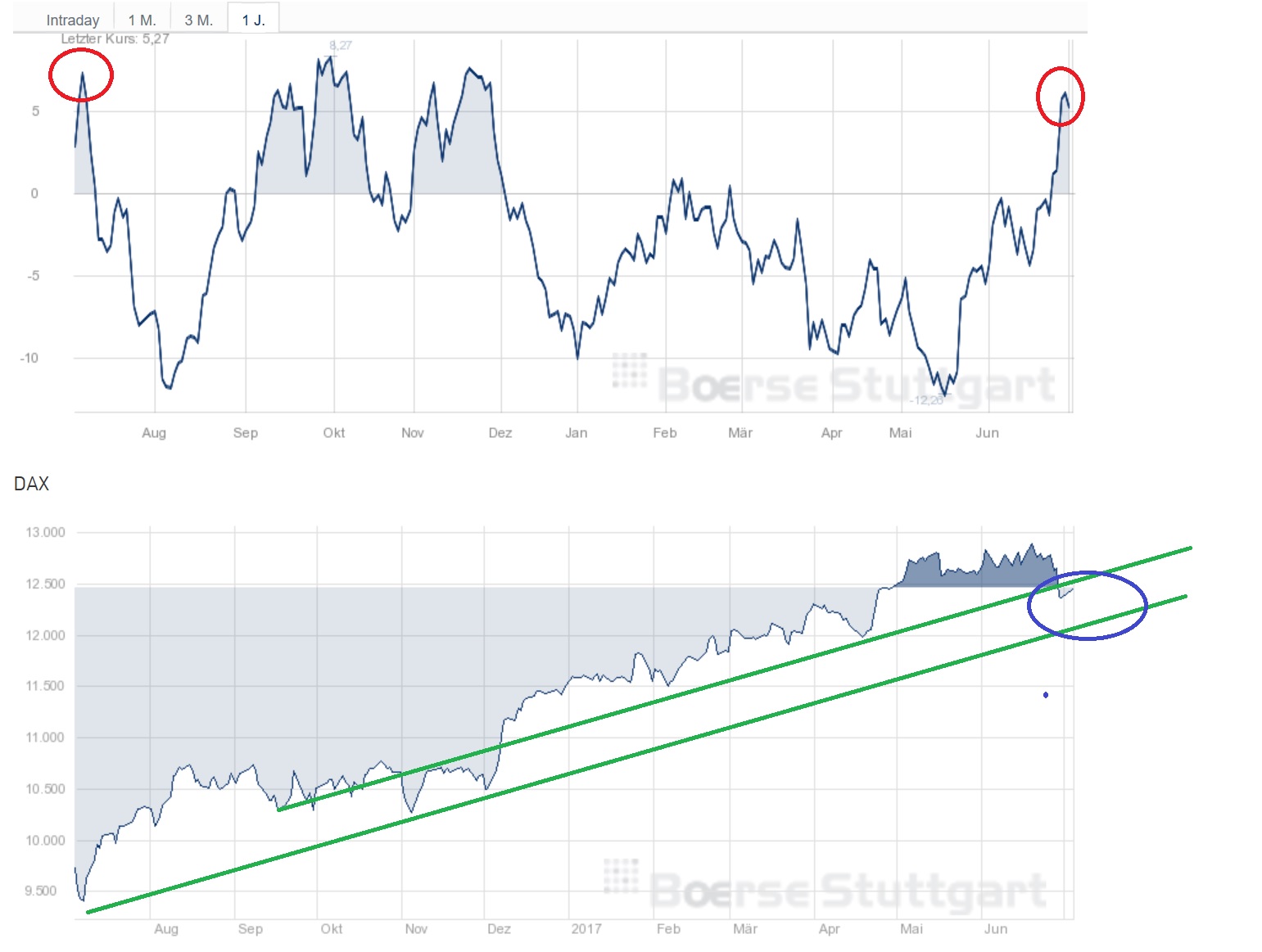 VDAX: 13,678 % (sehr tief)