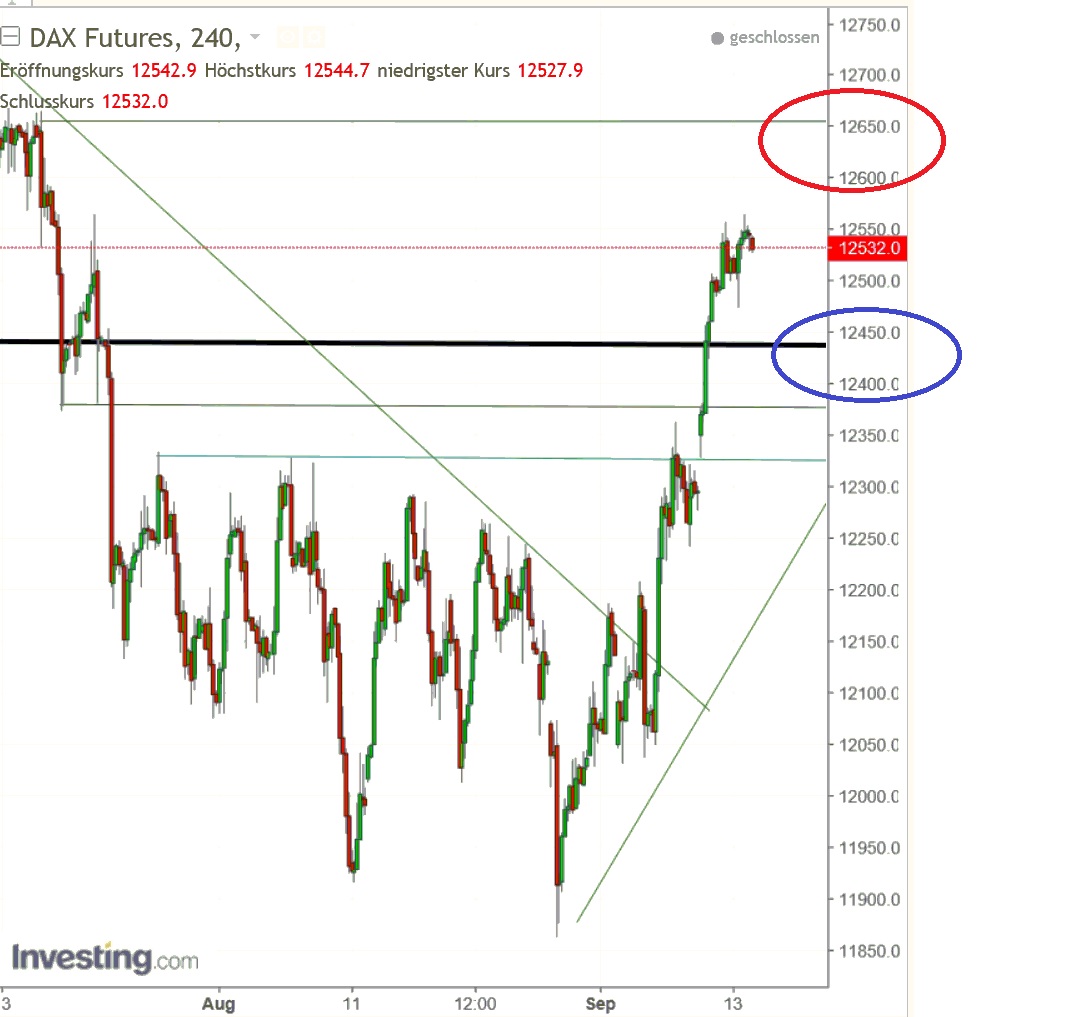 Rocco Gräfe rechnet beim Dax mit ca. 12.400 beim großen Verfall am morgigen Freitag. Drehen die Bullen an der EUR/USD-Schraube, wäre das gut machbar.