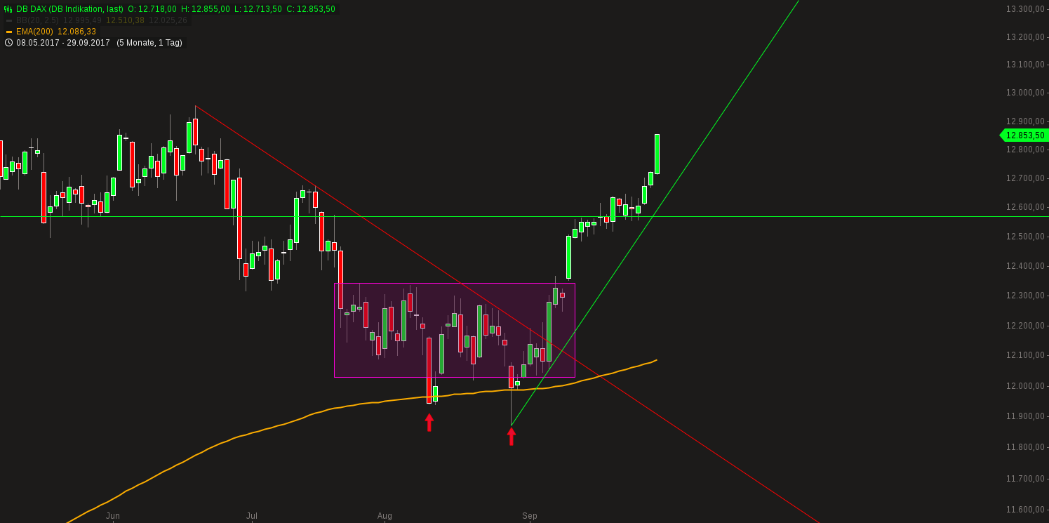 Das Ziel wären dann die bekannten 22.600 und bedenkt man die Saisonalität, gibt es keinen Grund, warum im Oktober die 23.000 nicht erreicht werden sollen.