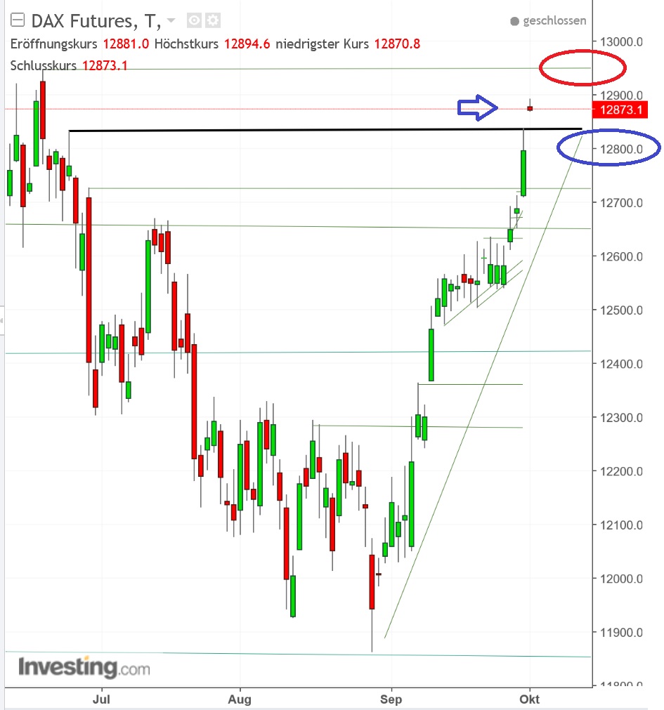 Kein schlechtes Ergebnis - die Woche und der September. Trotz statistisch schlechter Vorgaben kam der DAX nach der Bundestagswahl mit einem Wochenplus von 1,88 Prozent aus dem Handel und schloss den September sogar mit rund 7 Prozent ab. Damit nähern wir uns dem Allzeithoch auf rund 1 Prozent und könnten es in der kommenden Woche schon erreichen...
